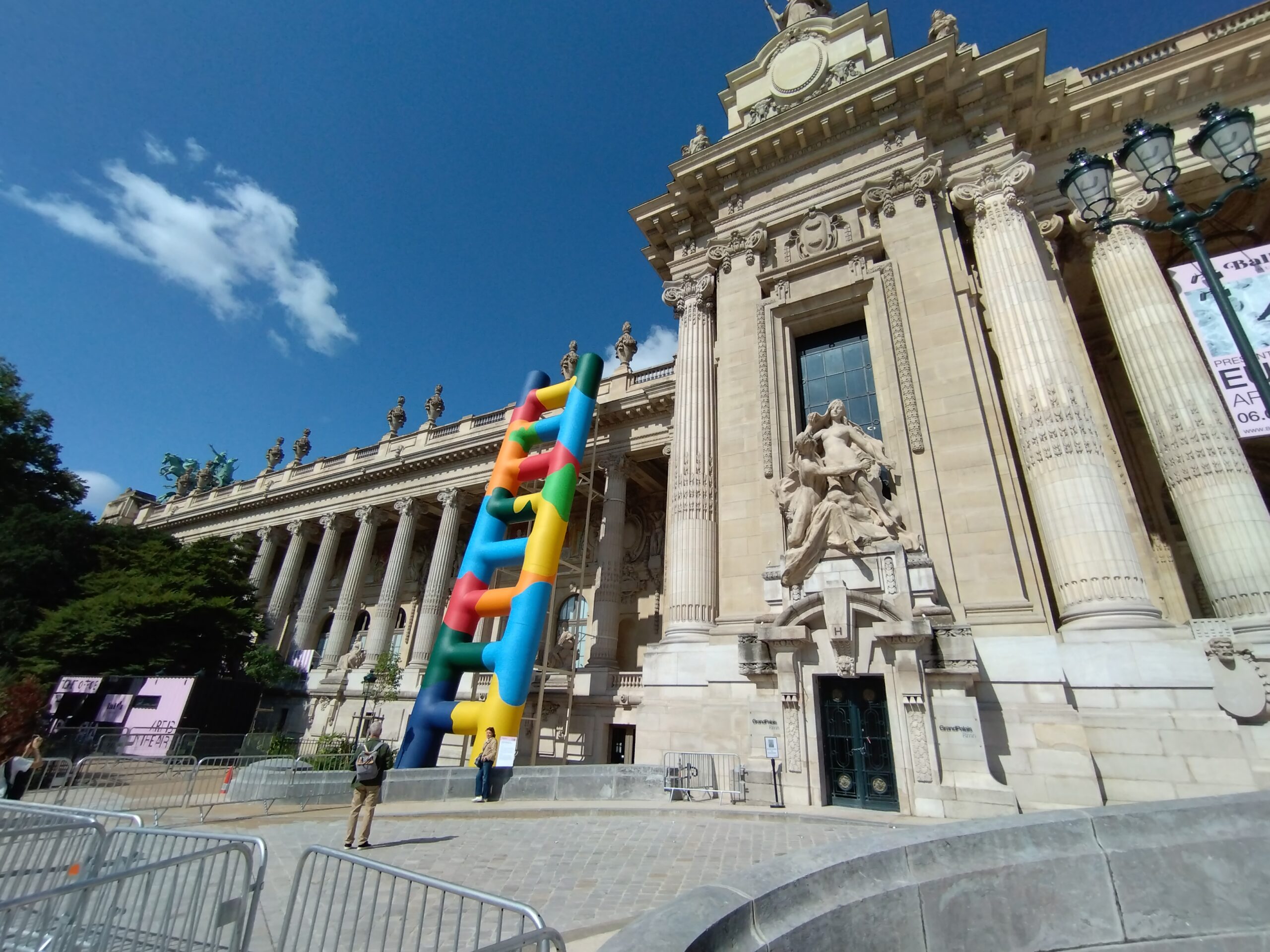 パオラ・ピヴィと初めて仕事をしたのは2013-14年の頃。2015年の越後妻有アートトリエンナーレに向けて作家のリサーチをしていた頃で2012年にニューヨークのセントラルパーク横で回転している飛行機を見て、さっそくパオラ・ピヴィとコンタクトをとった。豪雪地帯である十日町や津南の家の上に屋根の上に除雪の際に登れるように梯子が空に向かって突き出しているのを見て梯子がモチーフとなり、2015年に津南に巨大なカラフルな作品が完成した。その際に出来た作品はたまに海外の展覧会にも「Untitled (project for Echigo-Tsumari)」というタイトルで登場し、どこに置かれても風景を一変させる唐突で強い印象を与える。