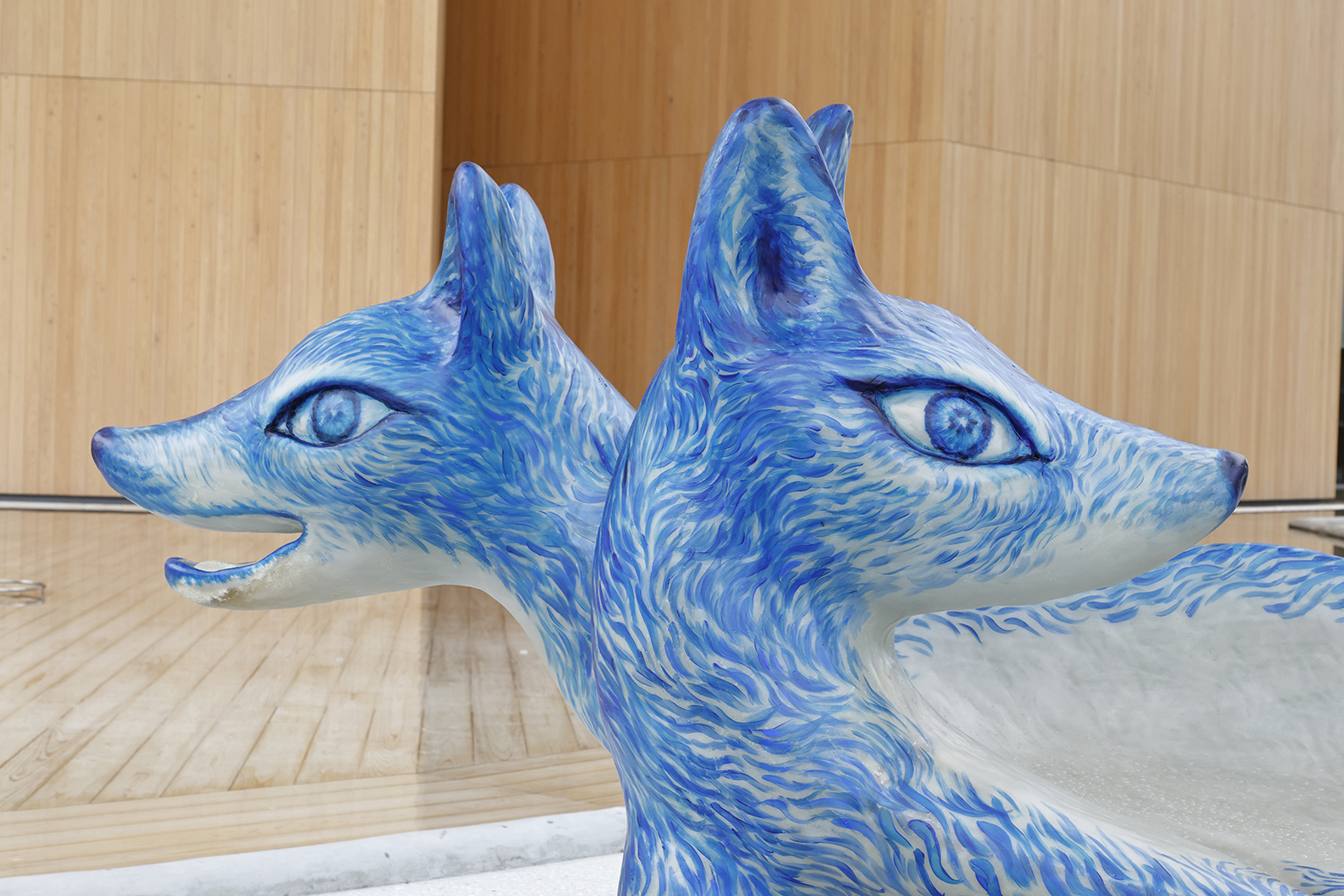 万博の展示が終わり、ヘルスケアパビリオンの外構に展示されていた10体の「サクヤオオカミ」達も展示当初から全国に散らばってゆくことを前提で考案さえていた。万博の会場から撤去され、移動は既に翌日に始まった。大阪城、伊丹空港、或いは省学校、公園、こどもホスピス、神社の杜、一般の集合住宅の庭へ「オオカミ」達は作品を必要としている人たちが居る場所から場所へと定期的に移動を続けている。この移動の軌跡を記録するために制作された「サクヤオオカミ プロジェクトブック」(2026年4月)には鴻池は次のように書いている。