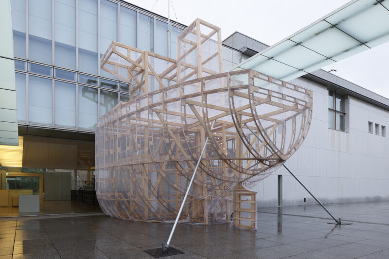 Utilizing the indoor and outdoor spaces other than the exhibition rooms of the Prefectural Museum of Art, which is currently undergoing renovation, he created a new large-scale installation. The exhibition traces Kuribayashi's artistic idea over the past 30 years by introducing unpublished drawings, small sculptures, works inspired by previous works, and videos.