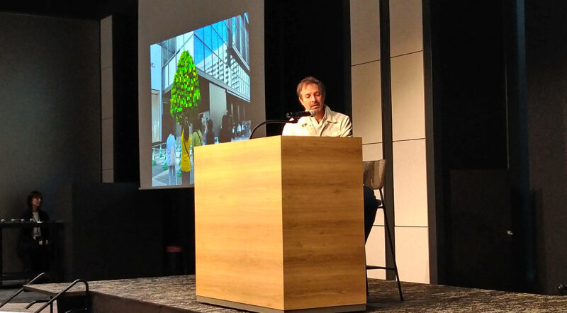 The location was the newly opened "ONE FUKUOKA BLDG." in the Tenjin district, Fukuoka, Japan. The new "Pixel Tree" was opened to public as a new landmark for Fukuoka on April 22, 2025. As for the opening reception, the artist gave a talk to the public.